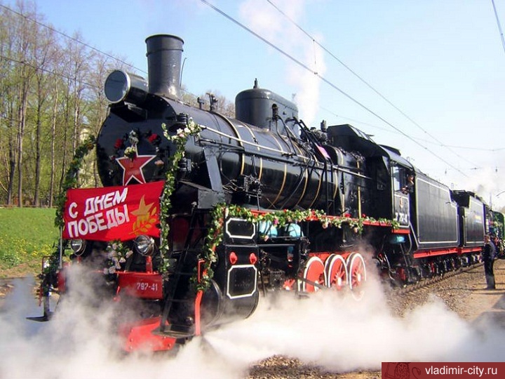 2 мая в 17 часов 22 минуты на железнодорожную станцию Владимир прибудет Поезд Победы. Во главе состава – паровоз военного времени. Пассажиры поезда – ветераны Великой Отечественной войны и труда, бывшие работники Горьковской железной дороги.